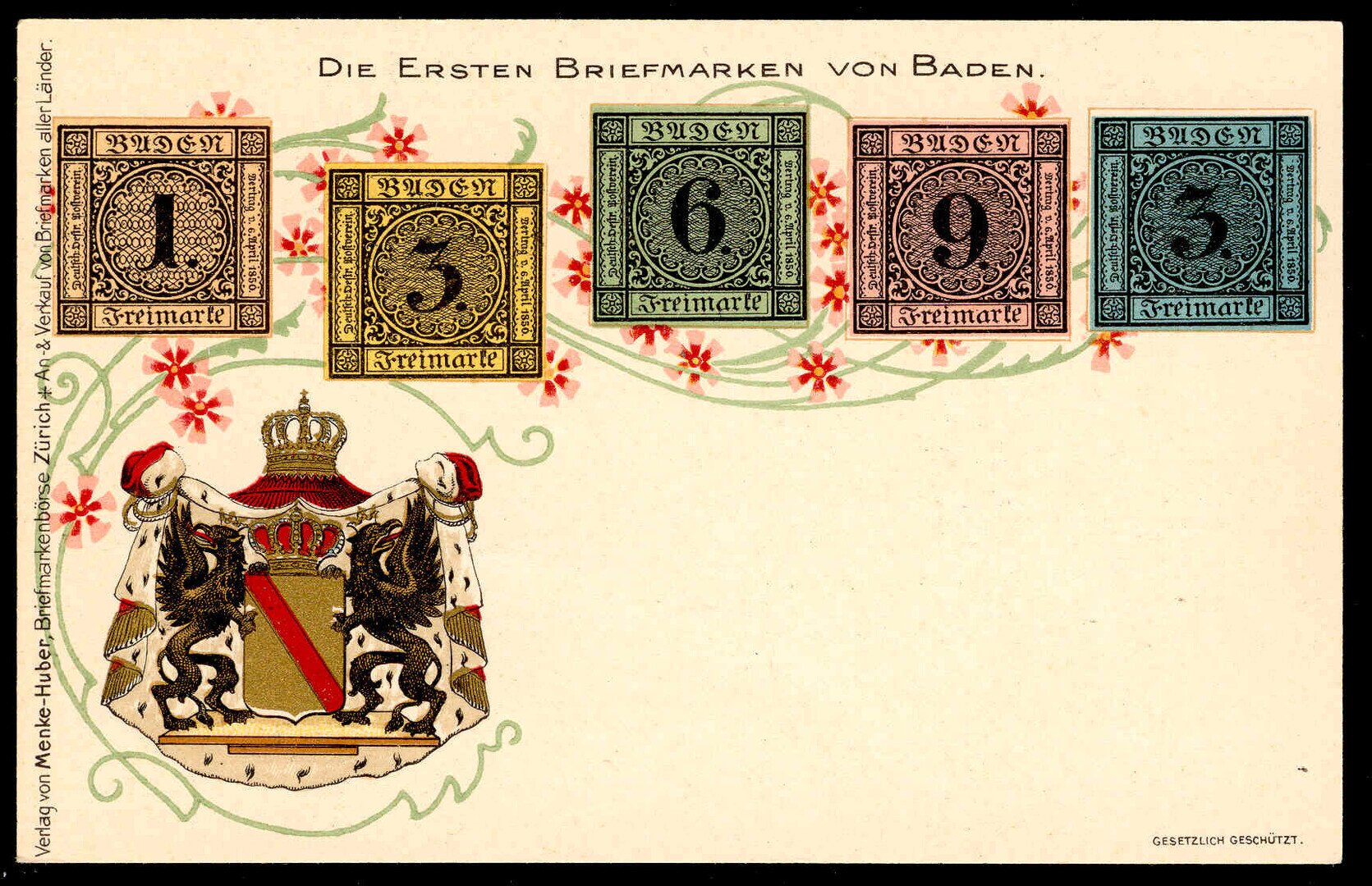 5 Ansichtskarten mit Abbildungender ersten Marken von: Baden,Bayern, Würtemberg, Frankreich,Rumänien - alle ungebraucht